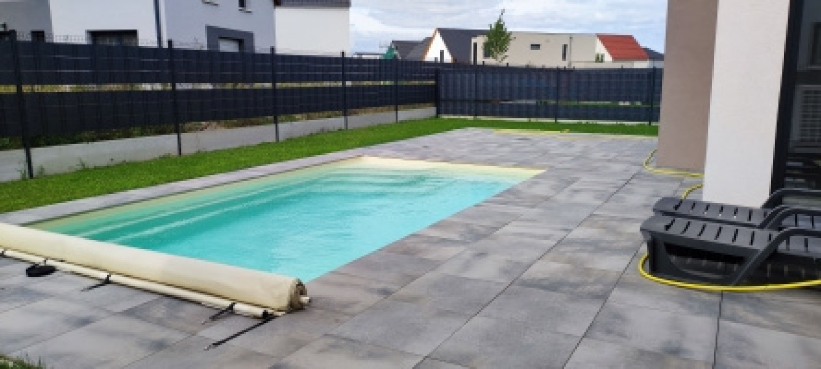 Pour profitez pleinement de l'été avec ce belle espace extérieur avec piscine chauffée dont un espace vert totalement cloturé et arboré